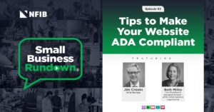 Beth Milito, Vice President and Executive Director of the NFIB Small Business Legal Center, is joined by NFIB member and Pennsylvania small business owner, Jim Crooks, to explore website ADA compliance and steps you can take to protect your business from costly lawsuits. Crooks also gives a first-hand account of his story on how ADA lawsuits have impacted his business.